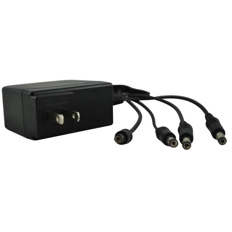 The REVO R12VPWR1TO4 is a 4 channel power supply that can power up to (4)12V cameras. You can power up to (4)REVO RJ12 cameras or (4)12V REVO Elite cameras. This power supply also allows you to minimize the amount of outlets used to power your security cameras.