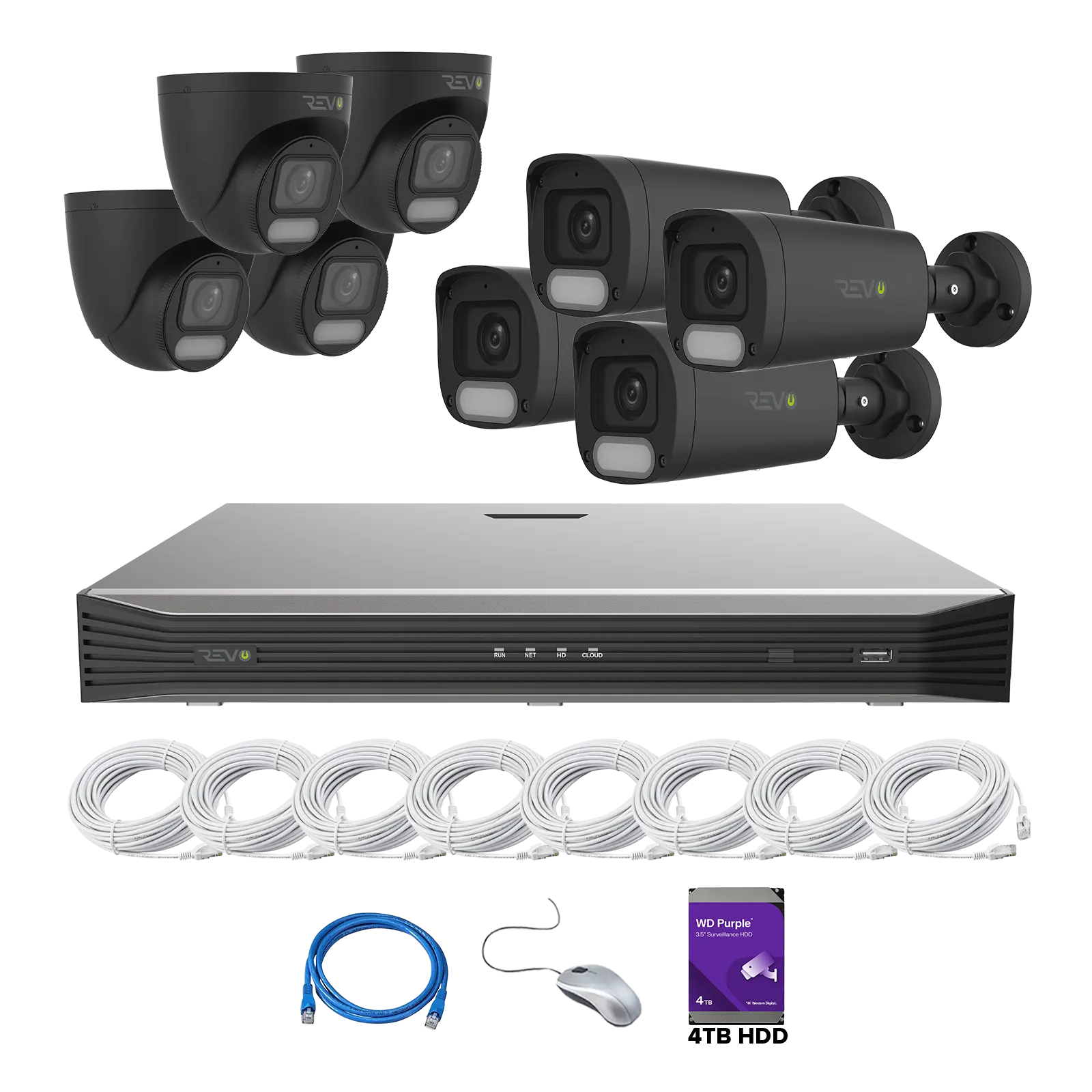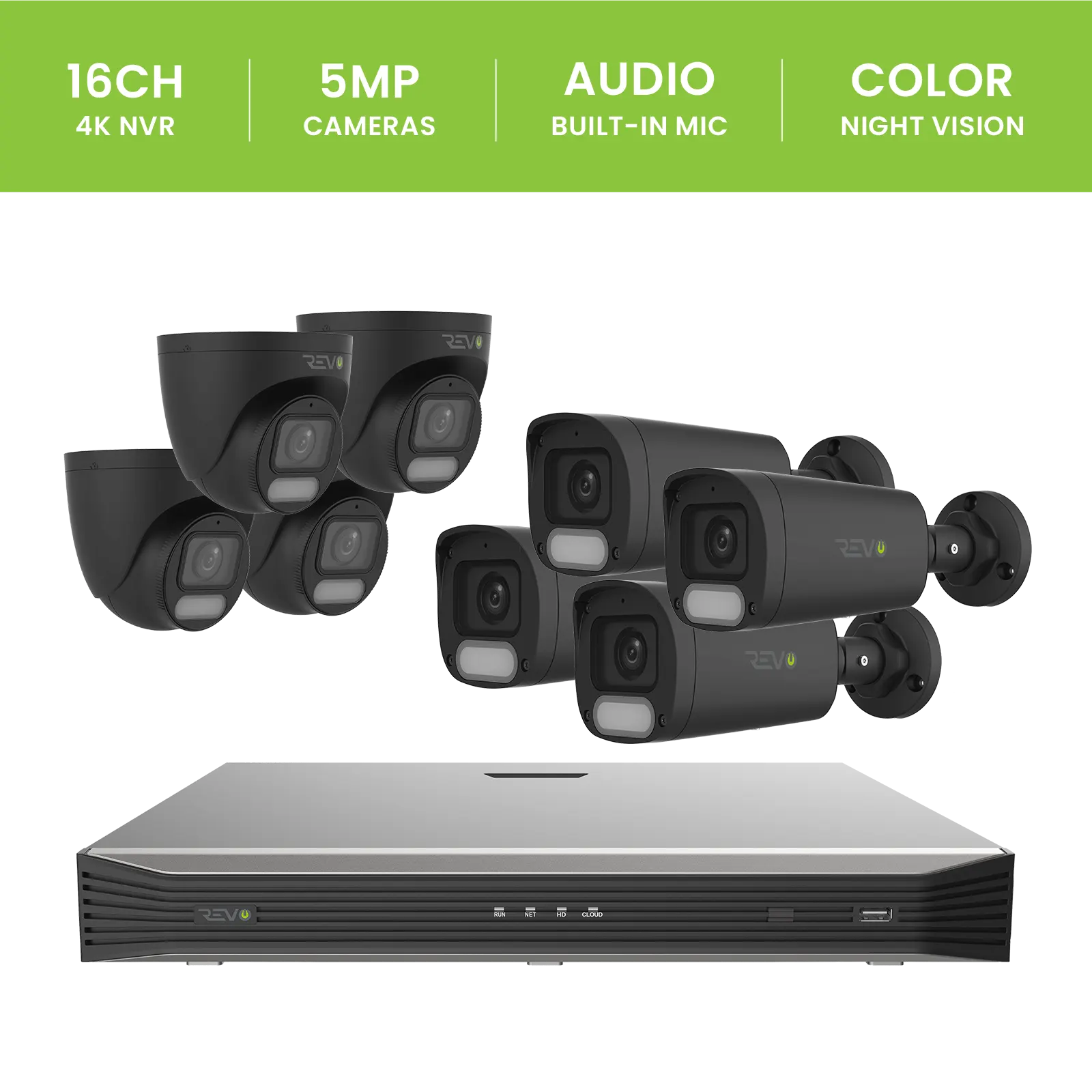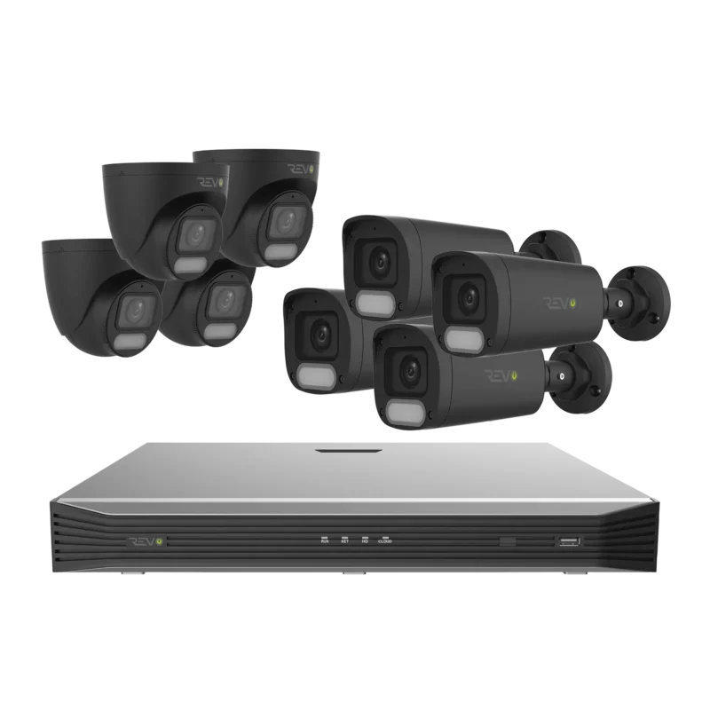 The REVO ULTRA LumeX SERIES combines high-definition clarity with the versatility of IP technology, delivering the ultimate solution in HD surveillance. Featuring a 16CH 4K PoE NVR, a 4TB pre-installed Video Surveillance grade HDD, eight advanced 5 Megapixel cameras and eight 100ft CAT5e cables, this system is ready to protect what matters most. Enjoy crystal-clear 5 Megapixel video two and half times the resolution of 1080p Full HD. The cameras offer color night vision, Built-in Microphone, Artificial Intelligence, True WDR, H.265 Compression and Smart IR LEDS. The advanced sensor and illumination technology enable the cameras to capture vivid, full-color video even in extremely low-light conditions. Its night vision quality is unparalleled, ensuring every detail is captured clearly. The 2.8mm wide angle lens offer 105 degrees of coverage. The cameras also feature a built-in microphone for high-quality audio recording and White Light IR LEDs, acting as a floodlight for enhanced security and deterrence. Smart motion detection feature analyzes motion patterns and classifies objects as humans, vehicles or irrelevant motion. This ensures accurate alerts and reduces false notifications. The MyRevoCloud platform and REVO ULTRA smartphone app offer intuitive remote access, enabling you to view live feeds, adjust settings, and search recorded video with ease. Step into the future of surveillance with the REVO ULTRA BLURE SERIES system—advanced security made simple and accessible.