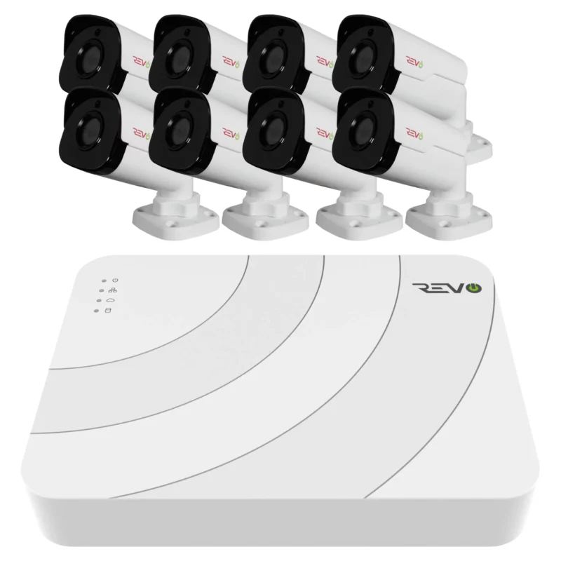 With incredible video quality, ease of use, and powerful networking tools, Revo Ultra is the very best that Revo has to offer. Revo Ultra’s unique design complements any home or business. The Revo Ultra’s superb video quality is based on IP technology which brings the power and beauty of digital high definition video right to the heart of your surveillance. The 2nd Generation 8 CH REVO ULTRA NVR features state of the art 4K Video Output, H.265 Compression, and support up to 4K Cameras. The 8 indoor/outdoor bullet cameras feature, optical grade glass, 3D Digital Noise Reduction, massive 4 Megapixel Sensors, double the resolution of standard 1080p HD. IR arrays illuminate the scene up to an unprecedented 100′ in total darkness. Revo Ultra cameras are able to handle temperatures as hot as 140F and as cold as -31F. View your Revo Ultra 4MP cameras from anywhere. Using the Revo Ultra Mobile smartphone app, simply set up an account and then scan your NVRs QR code to begin mobile viewing. Access your Ultra NVR via the web using MyRevoCloud, compatible with Internet Explorer. Want to view multiple Revo Ultra units at different locations from a single computer? With Revo EZStation Software, design your own custom layout of which cameras you’d like to view with Video Wall, or even lay them out on a custom map of your property with E-Map.